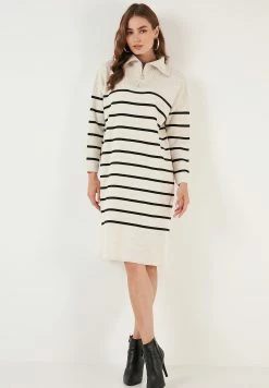LELA Gebreide Jurk – Cream/Black