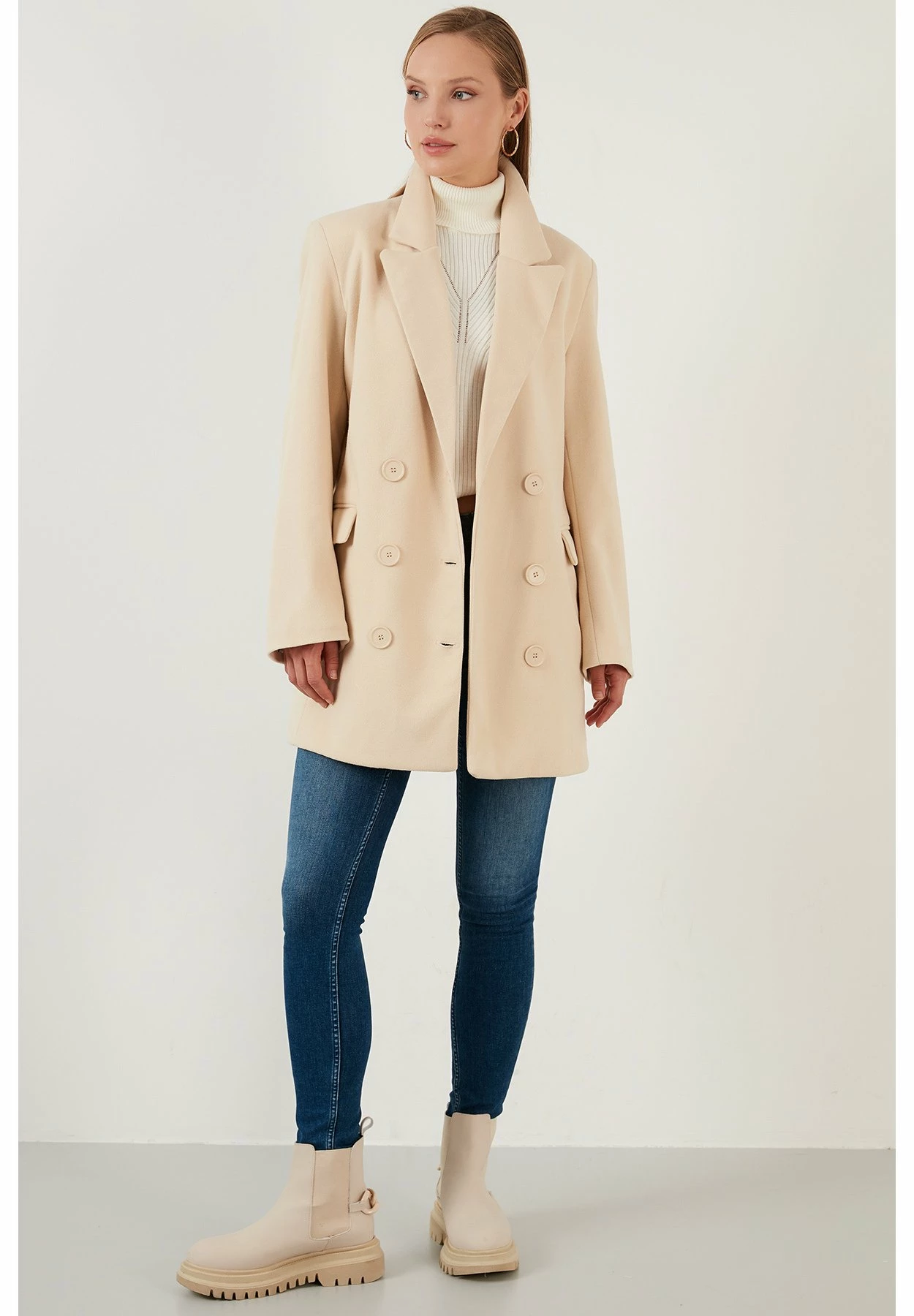 LELA Halflange Jas – Stone