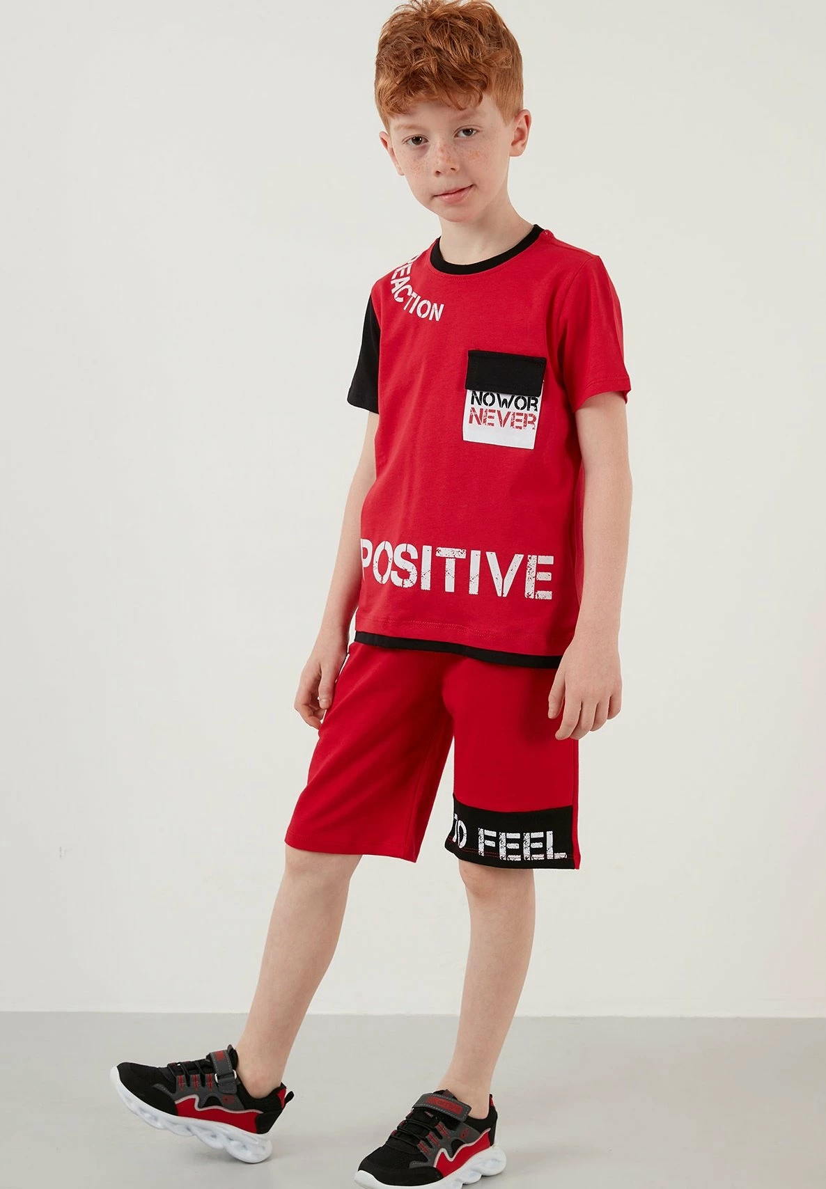 LELA Regular Fit T-Shirt And Shorts – Trainingspak – Red/Black