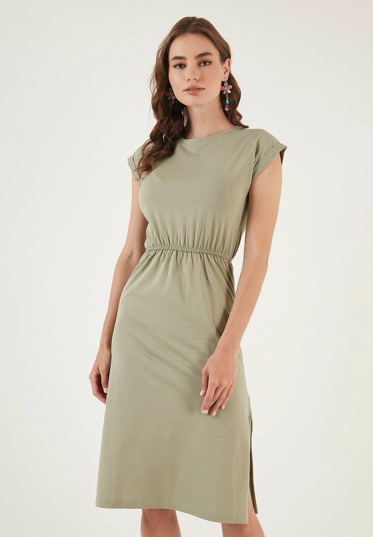 LELA Short Sleeve Midi – Jurk – Olive