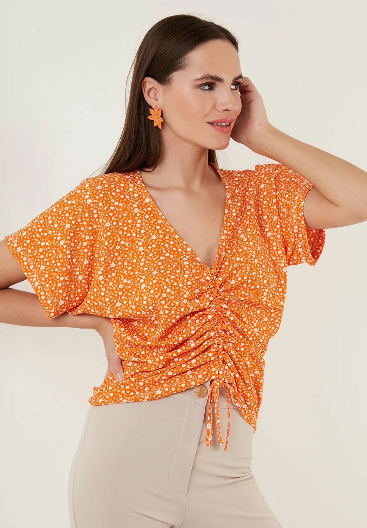 LELA V-Neck – Blouse – Orange